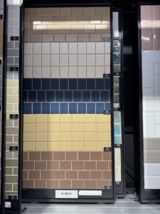 見本は土色みたいなベージュの目地。